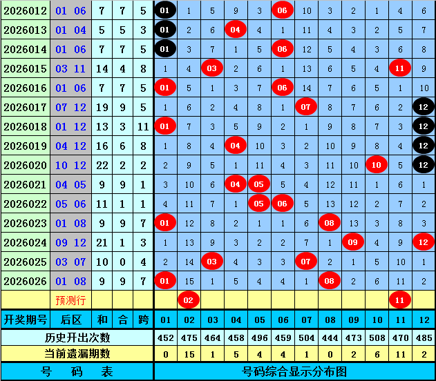 后区分析:上期后区奖号为01和08,最近5期后区和值分别为11、9、21、10、9,后区跨度分布范围在1-7,本期后区注意两码02、11。