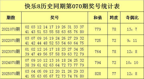 快乐8历史同期第070期奖号分析
