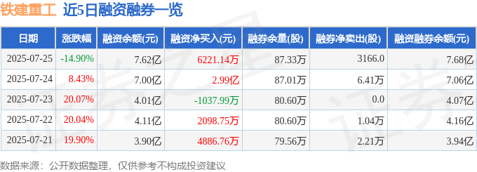 铁建重工融资融券信息显示,融资方面,当日融资买入4.28亿元,融资偿还3.66亿元,融资净买入6221.14万元。融券方面,融券卖出3166.0股,融券偿还0.0股,融券余量87.33万股,融券余额573.75万元。融资融券余额7.68亿元。